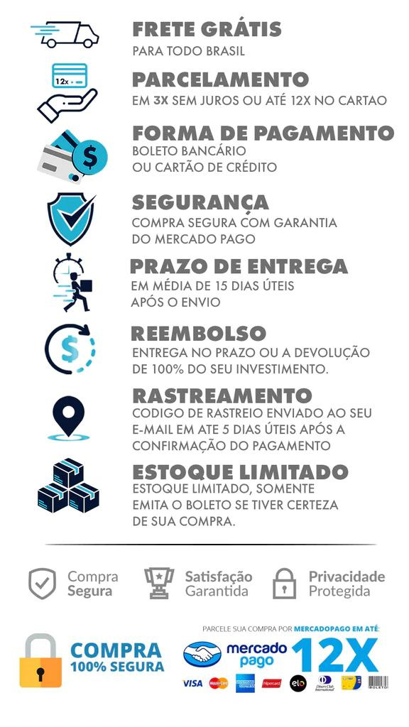 Atenção: O tempo estimado para entrega é de 7 á 15 dias úteis, pois nossos produtos chegam através dos Estados Unidos, Ásia e Europa.